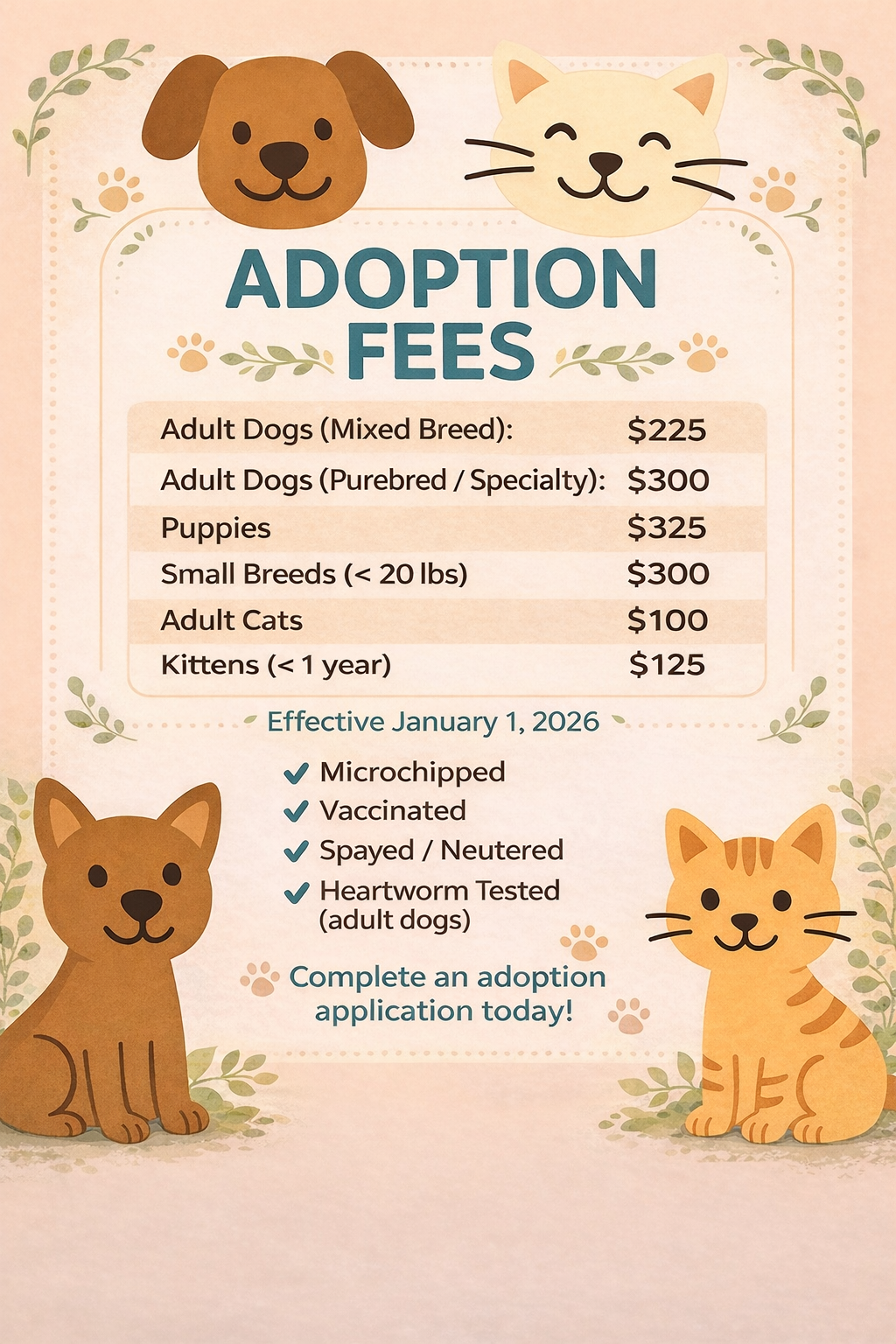 Effective Jan 1st, 2026 all cat and kitten fees include microchipping.